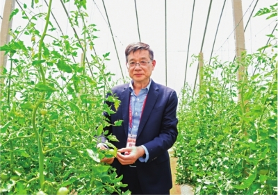 叶志彪教授在番茄基地调研(舟晟 蒋朝常 摄)