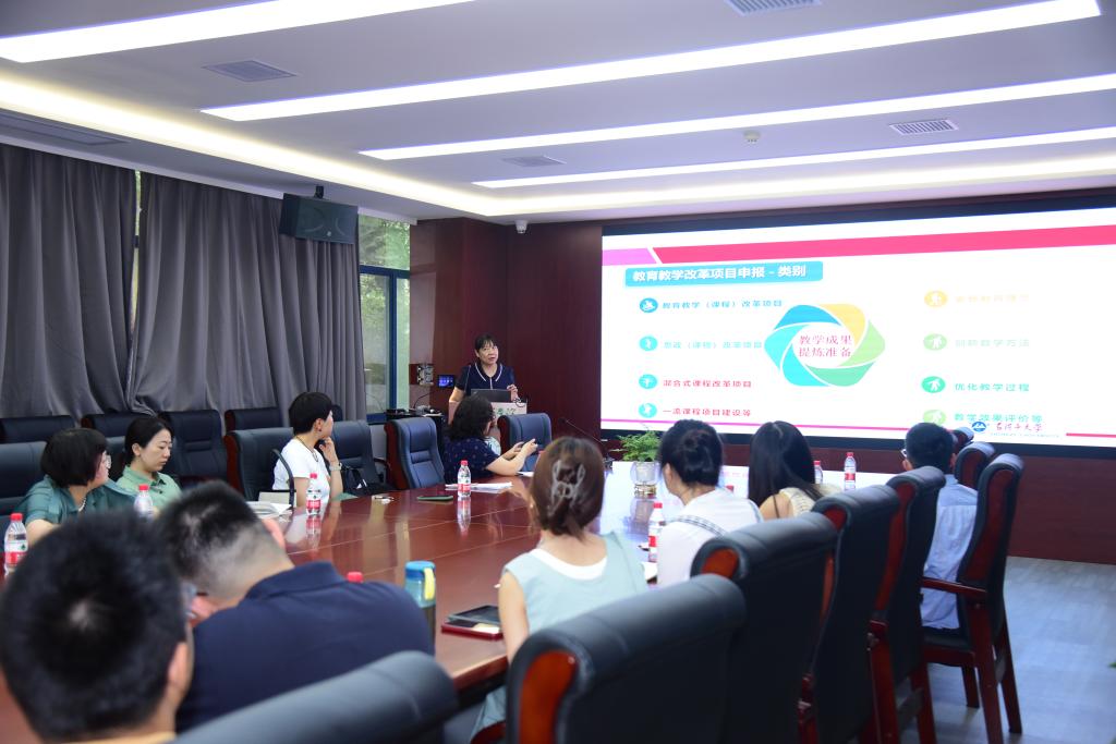 随后,申红教授以“基于课程建设的一流课程申报与混合教学经营分享”为题,为在座师生带来了一场关于课程建设和混合教学模式的精彩报告。她详细介绍了课程申报的流程和要求,分享了自己在申报一流课程过程中的心得体会。同时,申教授还深入剖析了混合教学模式的优势和挑战,并给出了具体的实施建议,为教学改革提供了新的思路和方法。