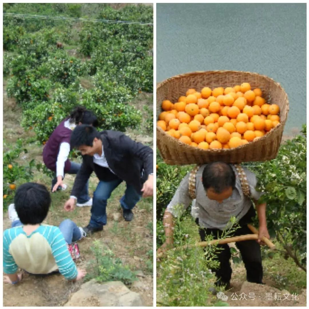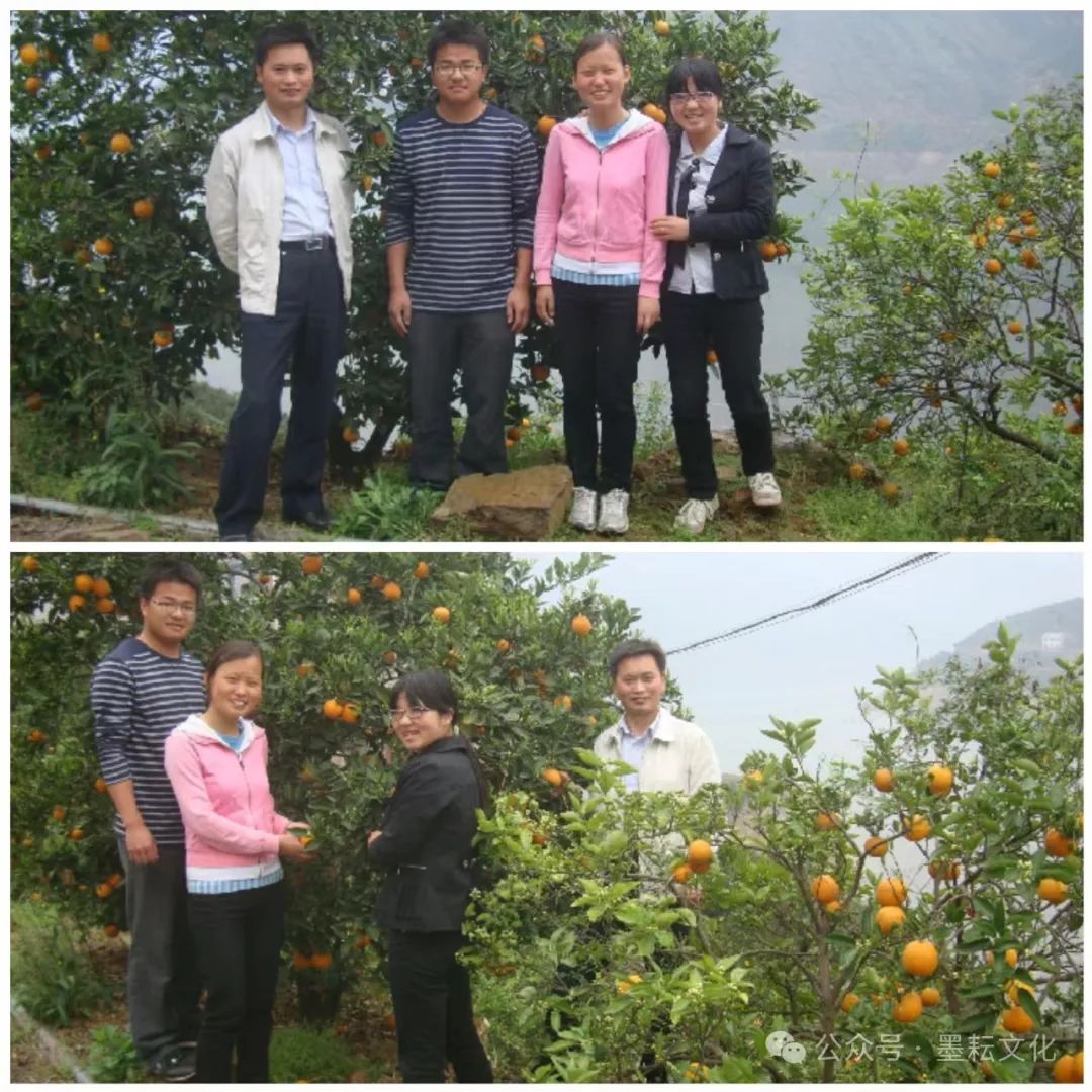 2009年4月,程运江教授带领研究生在秭归县泄滩采摘夏橙样品。城里的研究生们在果园里行走都十分艰难,但当地的橘农背近100斤的橙 子依然步履矫健
