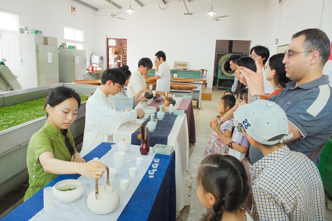 “茶香悠游”活动以“采茶狮山下,悠然见南湖”为主题,面向华中农业大学幼儿园的孩子们,包含盖碗茶艺表演、宋代点茶教学、六大茶类品饮、制茶工艺科普、茶园采茶体验、手工炒茶参观等几个板块。在两个小时的时间里,参与活动的孩子们亲眼见证了茶从一片茶树上翠绿的鲜叶到厚重的干茶,再在沸水之中几经沉浮,最终成为一杯鲜醇芬芳的茶汤的奇妙之旅,孩子们嘴角的笑容和眼神中的好奇都反映着茶的独特魅力。本次活动旨在传承古老的中华茶文化,通过制茶体验让参与者感受到每一片茶叶的来之不易,同时让更多的人了解到从采摘、摊放、揉捻、做形、干燥等一系列的制茶过程,增加对茶叶的认识和理解,提高文化自信、民族自信。