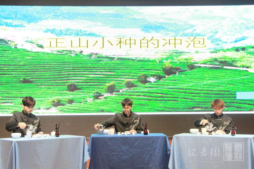 首先进行的是团体组的比赛。团体组的茶艺表演形式多样,情景剧、汉服秀、舞蹈等多种形式轮番上演。各组选手选取的茶类包括湖北青砖茶、信阳毛尖、红茶等等,种类丰富。第一组团体茶艺表演以“情系茶缘,尽享人生”为题,将舞蹈融入红茶茶艺表演,展现茶与生命结合的勃勃生机。以西南联大西迁,师生于茶馆中品茗论道为灵感来源,第三组同学以情景剧的形式演绎了战火纷飞的年代中的爱国情。第六组同学选取三国为题材,使用三种茶艺以指代三国:吴绿茶,北魏奶茶,西蜀盖碗红茶,以此表达在混乱的时期里,尽管不同地区饮茶习俗有差异,但各地百姓仍得以坐下来一起平和地泡茶品茶,以茶促和,共商和平道路,享受平和氛围。