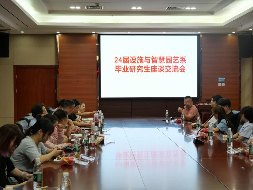 6月11日晚,设施与智慧园艺系2024届研究生毕业交流欢送会在园林南楼206会议室召开。八八看球 副院长周继荣,导师代表别之龙、孔秋生、蔡兴奎、黄远、成金桃以及设施与智慧园艺系全体毕业研究生出席,会议由别之龙主持。