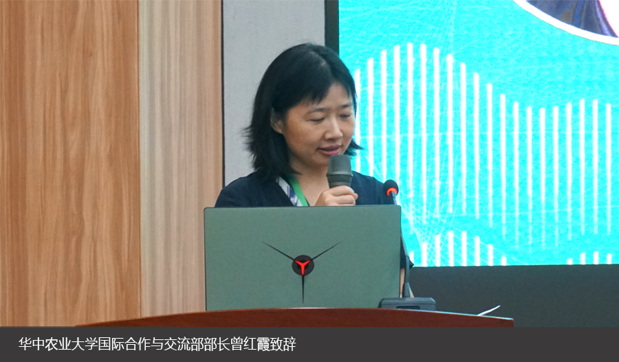 曾红霞代表华中农业大学国际合作与交流部感谢到场进行学术交流的外国来宾,并表达了自己对风景园林作为新质生产力的看法。