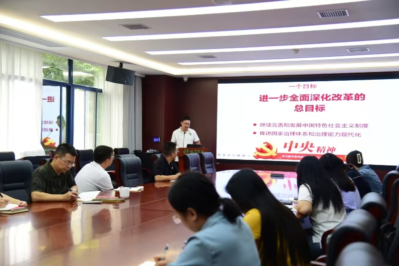 9月16日上午,八八看球 行政教工党支部在园林北楼219会议室集中学习。支部成员肖晗领学党的二十届三中全会精神、学习《论教育》《习近平关于人才工作论述摘编》与《中共中央国务院关于弘扬教育家精神加强新时代高素质专业化教师队伍建设的意见》重要内容。