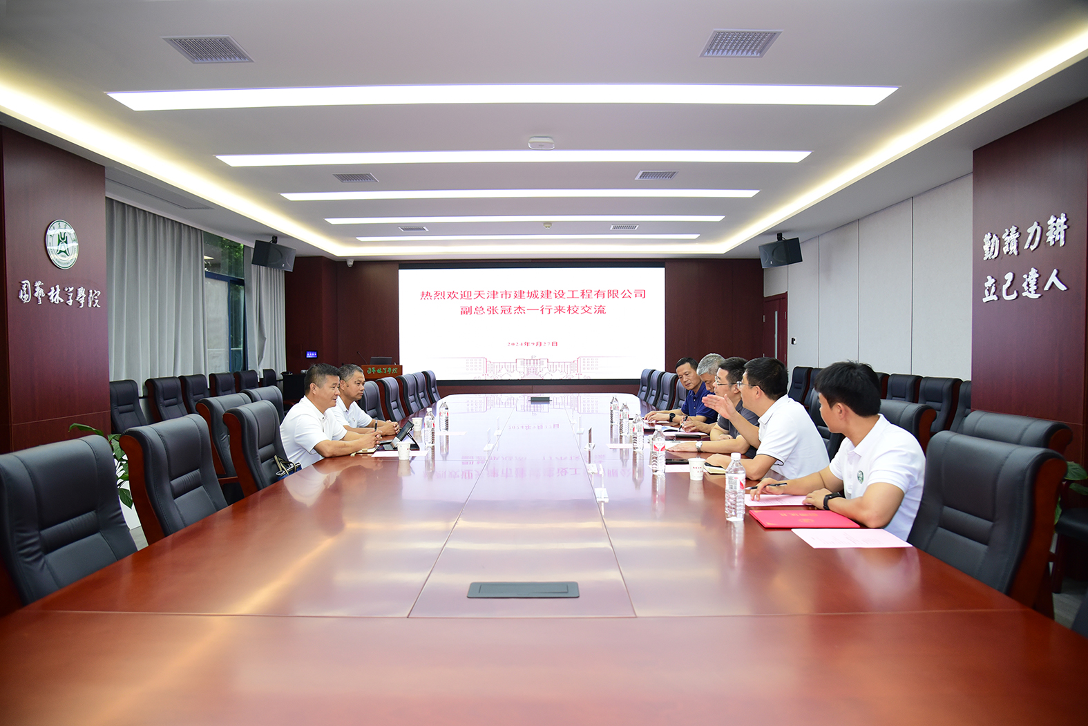 龙健飞对天津市建城建设工程有限公司的捐赠表示感谢,他指出,企业的慷慨捐赠不仅是对教育事业的有力支持,更是对人才培养和社会责任的深刻践行,彰显了企业的高瞻远瞩与社会担当。他强调,当前学校正处于高质量发展的关键时期,期待与企业进一步加强合作,实现互利共赢,并祝愿校友企业蓬勃发展。