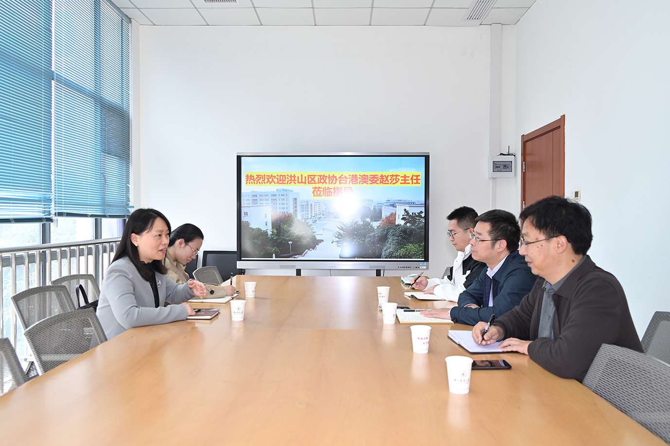 10月22日上午,洪山区政协台港澳委主任赵莎一行来院看望洪山区政协委员、校民盟委员会副主委孔秋生教授,八八看球 热情接待了赵莎一行,并在园林南楼218会议室进行座谈交流。八八看球 党委书记龙健飞、办公室工作人员参加。