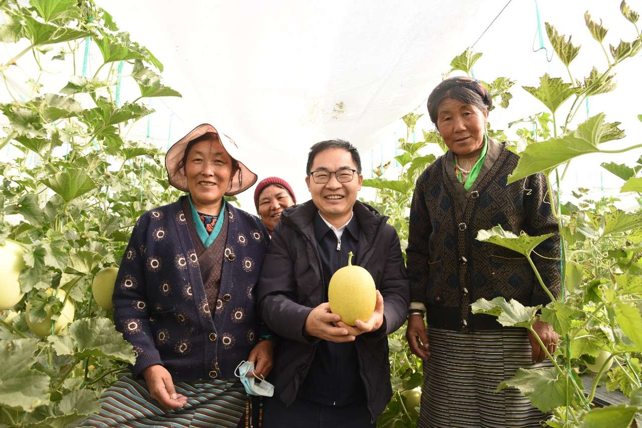 这是由华中农业大学副教授黄远团队和中国农科院郑州果树研究所研究员徐永阳团队共同技术支持的西藏跃林创建科技有限公司果蔬大棚的一个欢乐场景。