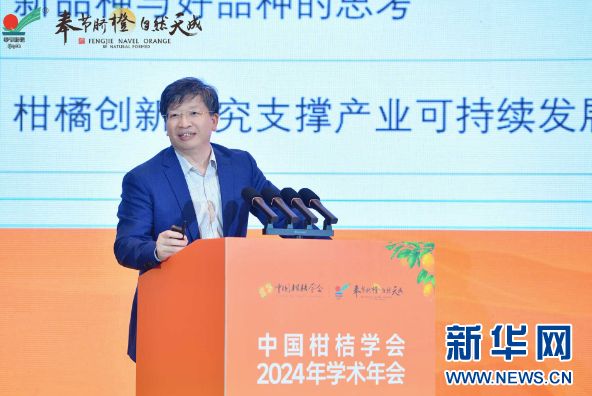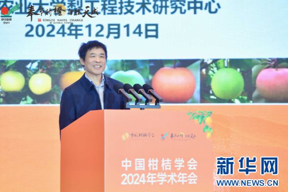 中国工程院院士、华中农业大学教授邓秀新作《中国柑橘产业发展的思考》报告。新华网 陈蒙 摄