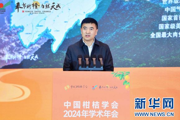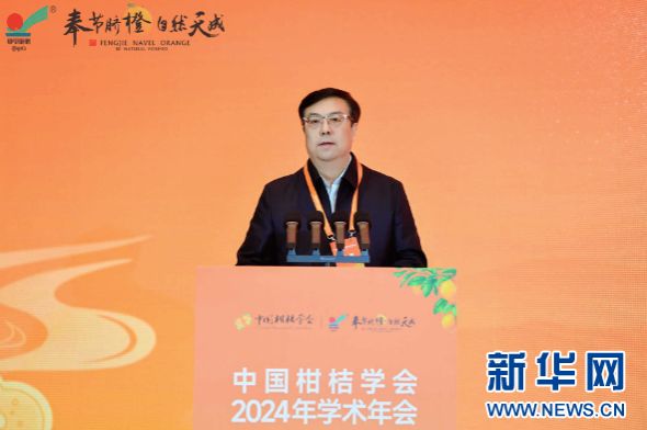 中国柑桔学会副理事长、西南大学校长王进军致辞。新华网 陈蒙 摄