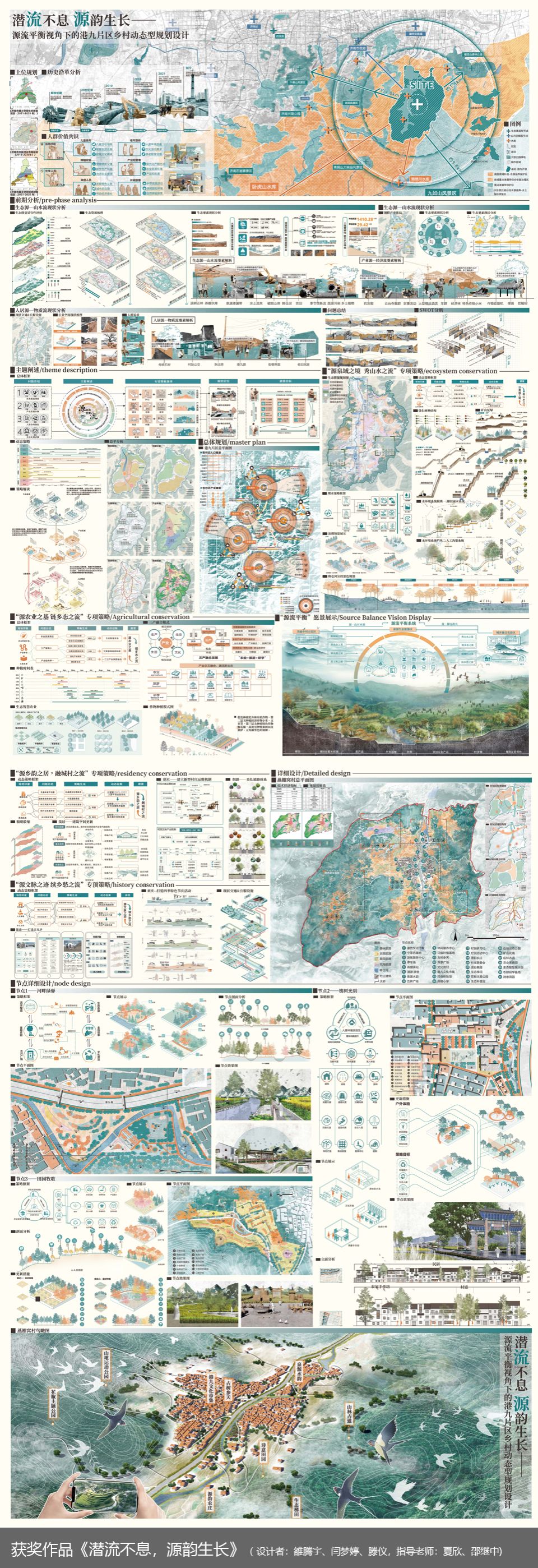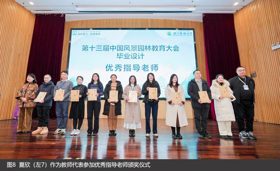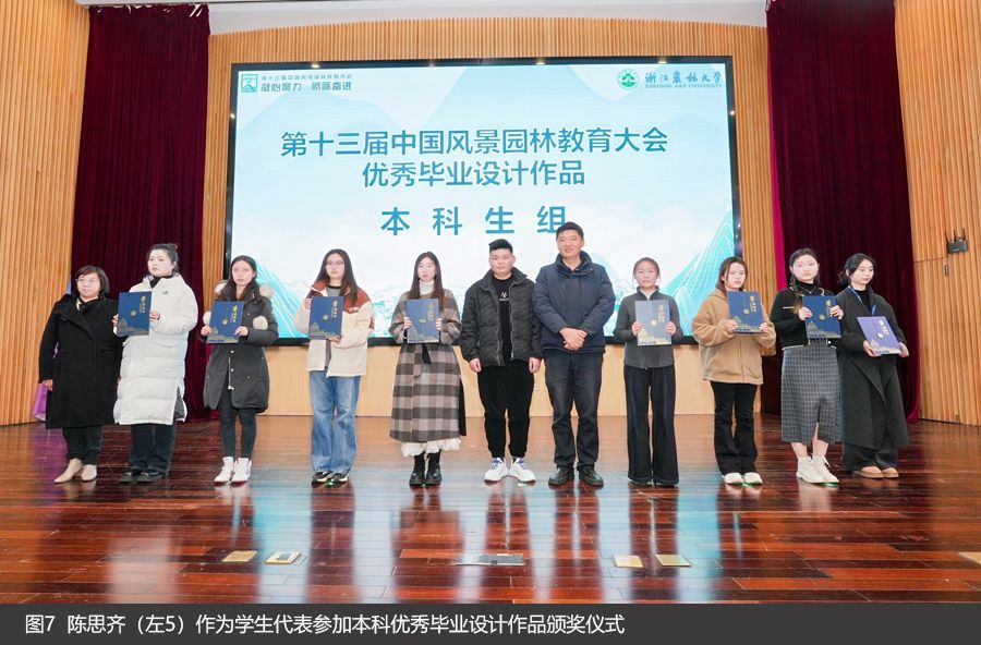 15日下午,大会闭幕式各论坛主持人对两天的议题和报告进行了精彩总结并公布了2024届优秀毕业设计作品及优秀指导教师名单。本次大会共收到全国相关专业院校提交的本科毕业设计作品600多份,专家从中评选出30份优秀毕业设计。我校2020级风景园林专业学生雒腾宇、闫梦婷、滕仪三位同学完成的作品《潜流不息,源韵生长——源流平衡视角下的港九片区乡村动态型规划设计》(指导老师:夏欣、邵继中);赵玉龙、陈思齐两位同学完成的作品《捻水织锦——多元耦合目标下湖北省恩施州唐崖镇镇区滨水空间规划设计》(指导老师:杜雁、王通(联合毕设指导教师,华中科技大学),获2024届优秀本科毕业设计作品。我校风景园林系邵继中教授、杜雁副教授和夏欣老师荣获2024届本科毕业设计优秀指导教师奖。