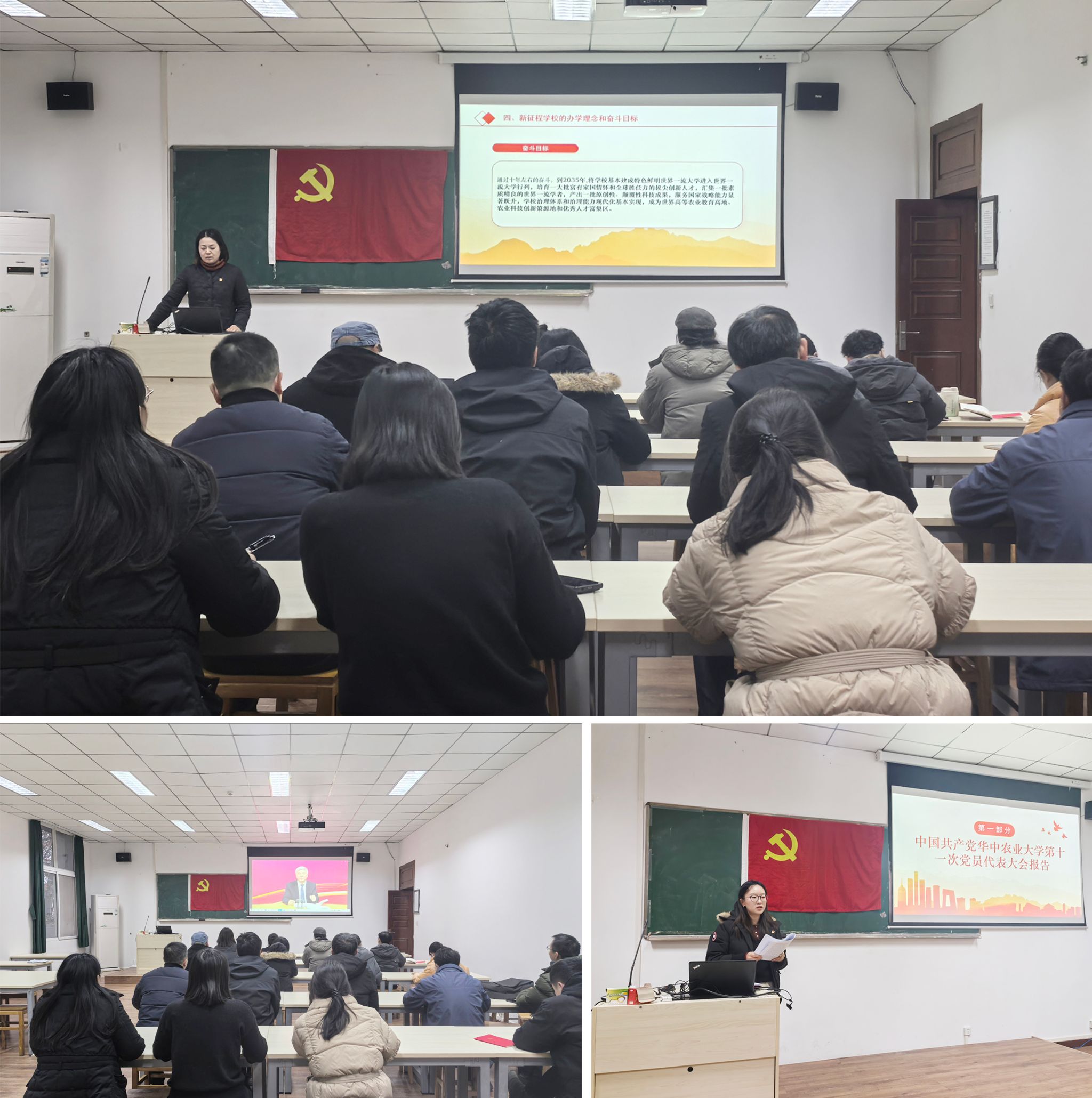 会上,教师党员共同学习了《中国共产党华中农业大学第十一次党员代表大会报告》和《加快建设特色鲜明世界一流大学的宣言书和动员令》等文件精神,观看了《学习贯彻党的二十届三中全会精神专题培训》视频。党员教师们回顾了我国十次党代会以来的工作,充分认识到要以立德树人为根本、强农兴农为己任,以质图强、融创致新,奋力谱写建设特色鲜明世界一流大学新华章;宣言书和动员令深刻地把握党的二十大精神,反映广大师生意愿,荟聚集体智慧结晶,坚持内涵式高质量发展,统筹推进“八项行动”,加快建设特色鲜明世界一流大学。此外,张婧雅分享了第十一次党代会现场参会学习心得,她从发展奋斗目标、国家战略与办学方针、国际办学建设等方面探讨了学科发展的思路与方向。