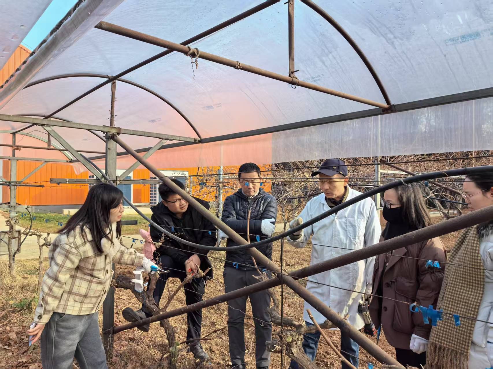 在郭老师的亲自示范和耐心指导下,实验技术人员们纷纷动手实践,对基地内的葡萄、猕猴桃等果树进行了精准修剪。郭老师现场解答了大家在修剪过程中遇到的问题,确保每位参训人员都能掌握修剪要领。