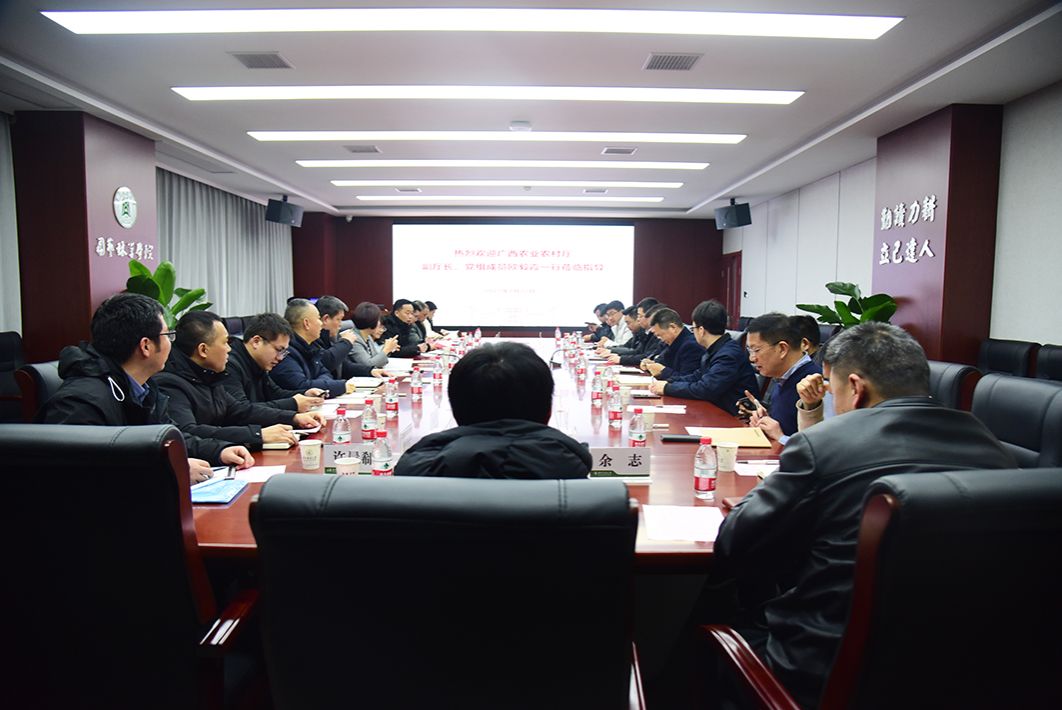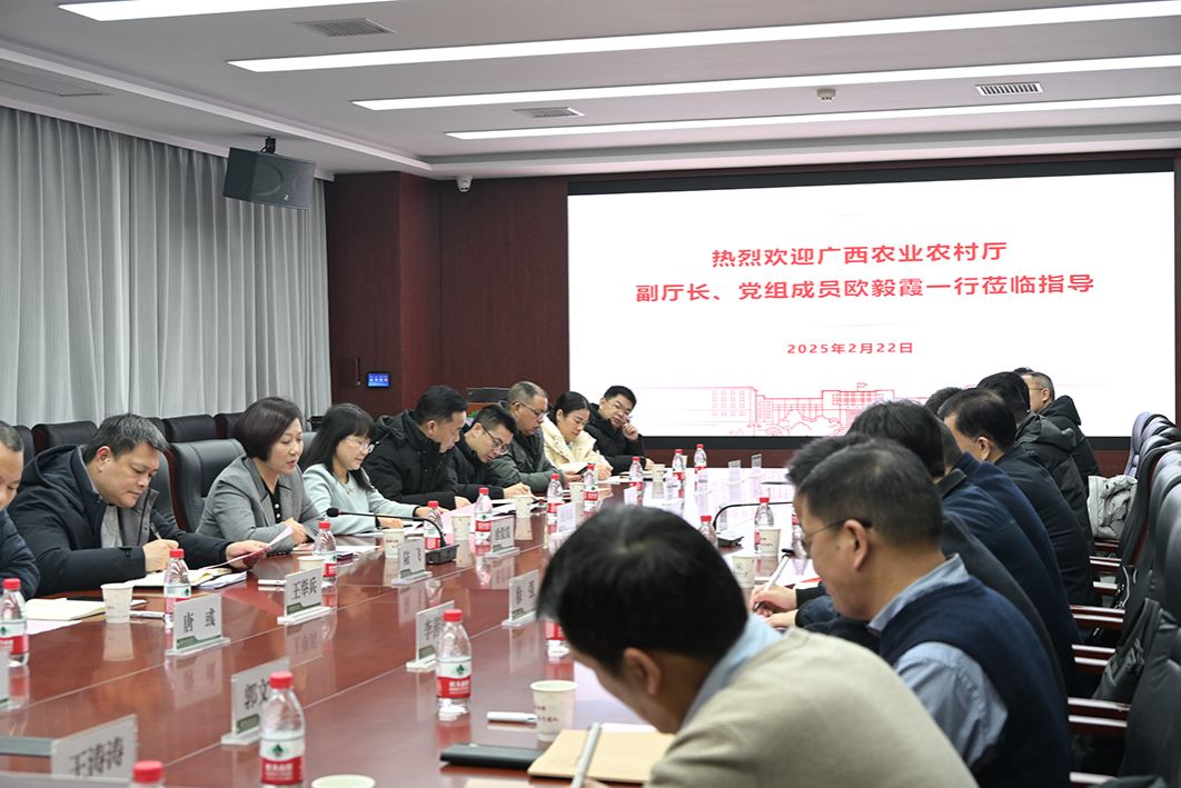 2月22日下午,广西农业农村厅副厅长、党组成员、人事处处长欧毅霞一行来院调研,校党委副书记、副校长姚江林、八八看球 党委书记龙健飞、院长程运江热情接待了欧毅霞一行并举行座谈交流。座谈会由龙健飞主持。