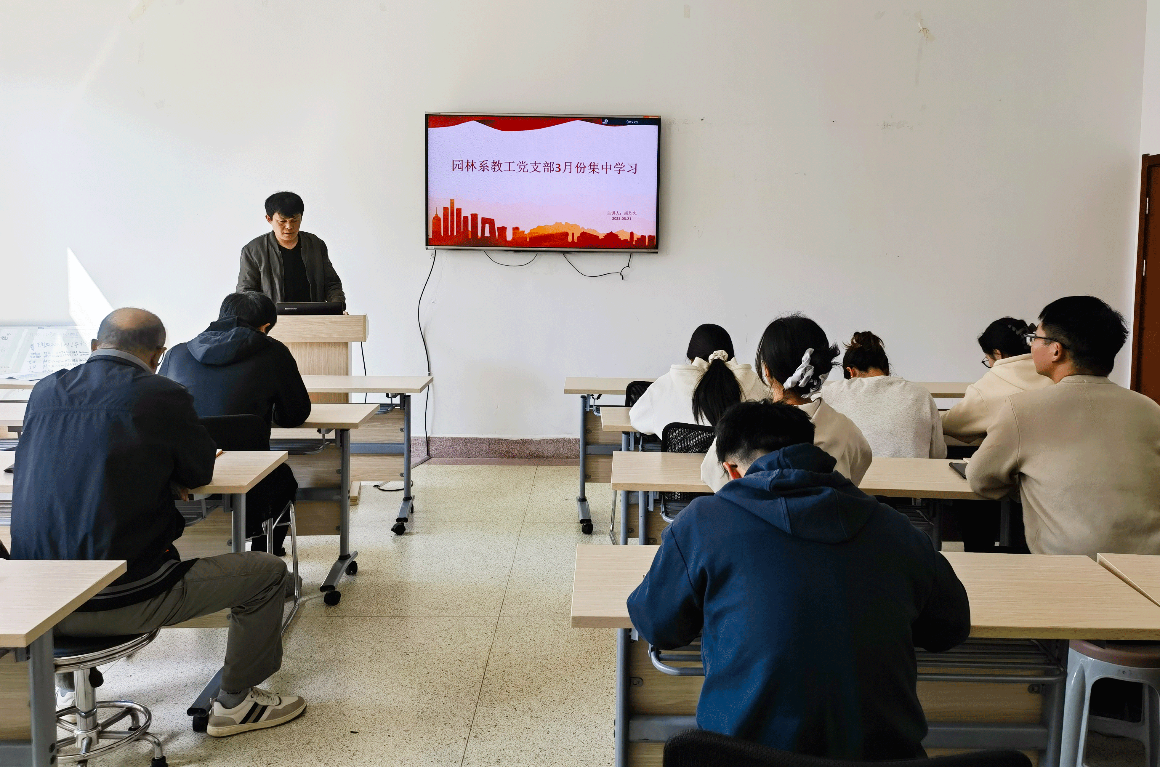 3月21日下午,园林系教工党支部在园林南楼317会议室开展了3月党日活动。本次活动由尚均忠同志领学,支部全体党员教师积极参与学习讨论。