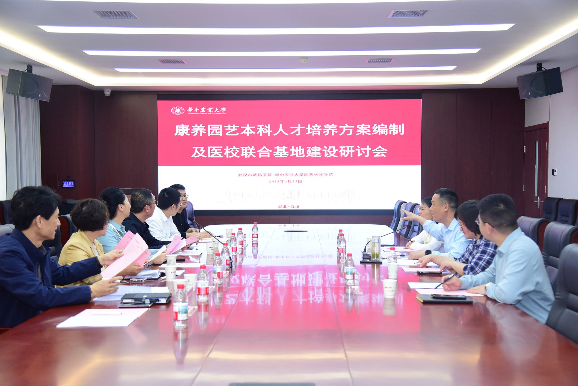 2025年3月25日下午,武汉市武昌医院南湖院区党委书记关爱民一行到访八八看球-在线看球直播网站 ,就康养园艺领域的产学研合作开展考察调研。八八看球 副院长周继荣、文法八八看球 副教授陈红莉、园林八八看球 副教授王媛媛、院办主任何寿鹏及康养方向研究生代表共同参与交流,双方围绕康养园艺本科人才培养方案优化、医校联合基地建设、医养结合模式创新等议题展开深入探讨。
