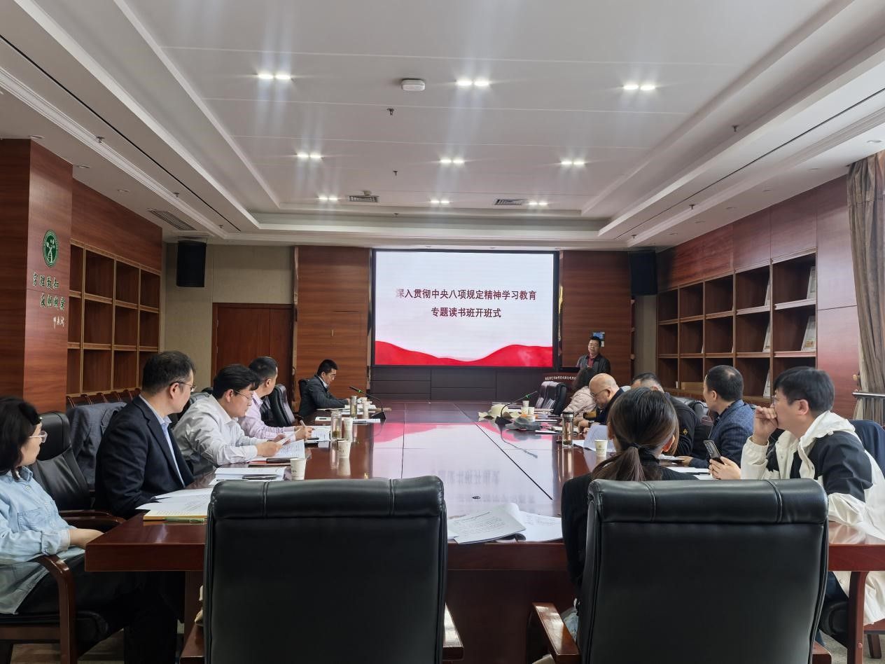 4月3日下午,八八看球 在园林南楼206会议室举行深入贯彻中央八项规定精神学习教育专题读书班开班仪式。八八看球 党委书记龙健飞主持开班仪式并讲授专题党课,八八看球 领导班子成员、党委委员、教工党支部书记、系主任参加活动。