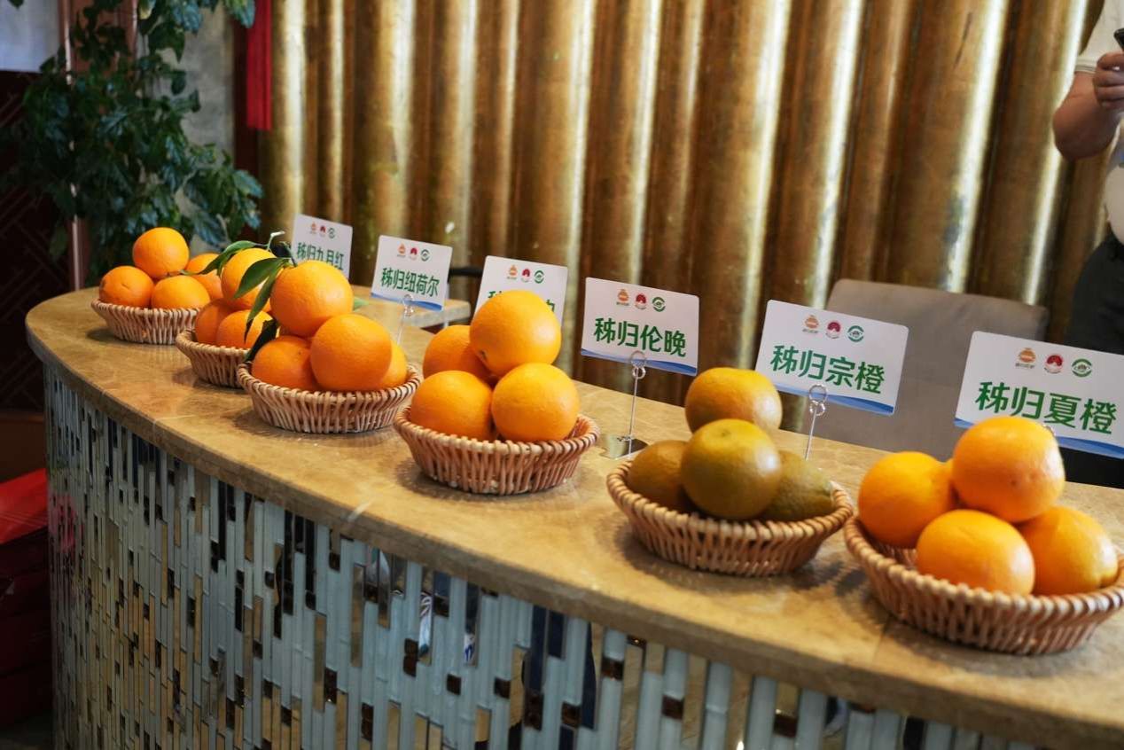 秭归县委副书记、人民政府县长李芹介绍,秭归县构建了“春有伦晚,夏有夏橙,秋有九月红,冬有纽荷尔”的四季鲜橙格局。全县脐橙种植面积40万亩,产量100万吨,脐橙的综合产值203亿元,产品远销140多个国家和地区,品牌价值突破200亿元。