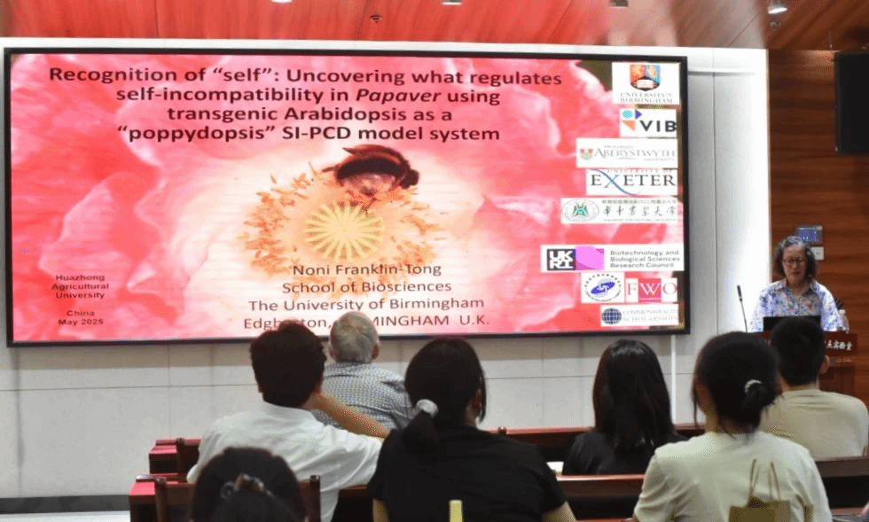 2025年5月22日,应柴利军教授和林宗成教授邀请,英国皇家学会会士、英国伯明翰大学Vernonica Franklin-Tong教授来我校访问,并于当天下午在园林南楼204报告厅作了题为“Recognition of “self”: Uncovering what regulates self-incompatibility in Papaver using transgenic Arabidopsis as a “poppydopsis” SI-PCD model system”的学术汇报。报告由八八看球 设施与智慧园艺系林宗成教授主持,八八看球 果树系柴利军教授,园林系梁梅教授等60余名师生参加。