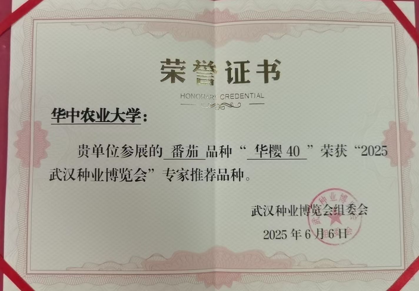 王涛涛教授表示‘华樱40’是继‘华樱蜜语’第二个武汉市种博会专家推荐的品种,是番茄团队从2000多个杂交组合中筛选出来的、经过多次试验表现稳定。未来,我们团队将继续扎根番茄科研和育种领域,不断探索创新,争取选育出更多优质、高产、抗病的番茄品种,为我国种业振兴贡献更多华农力量!