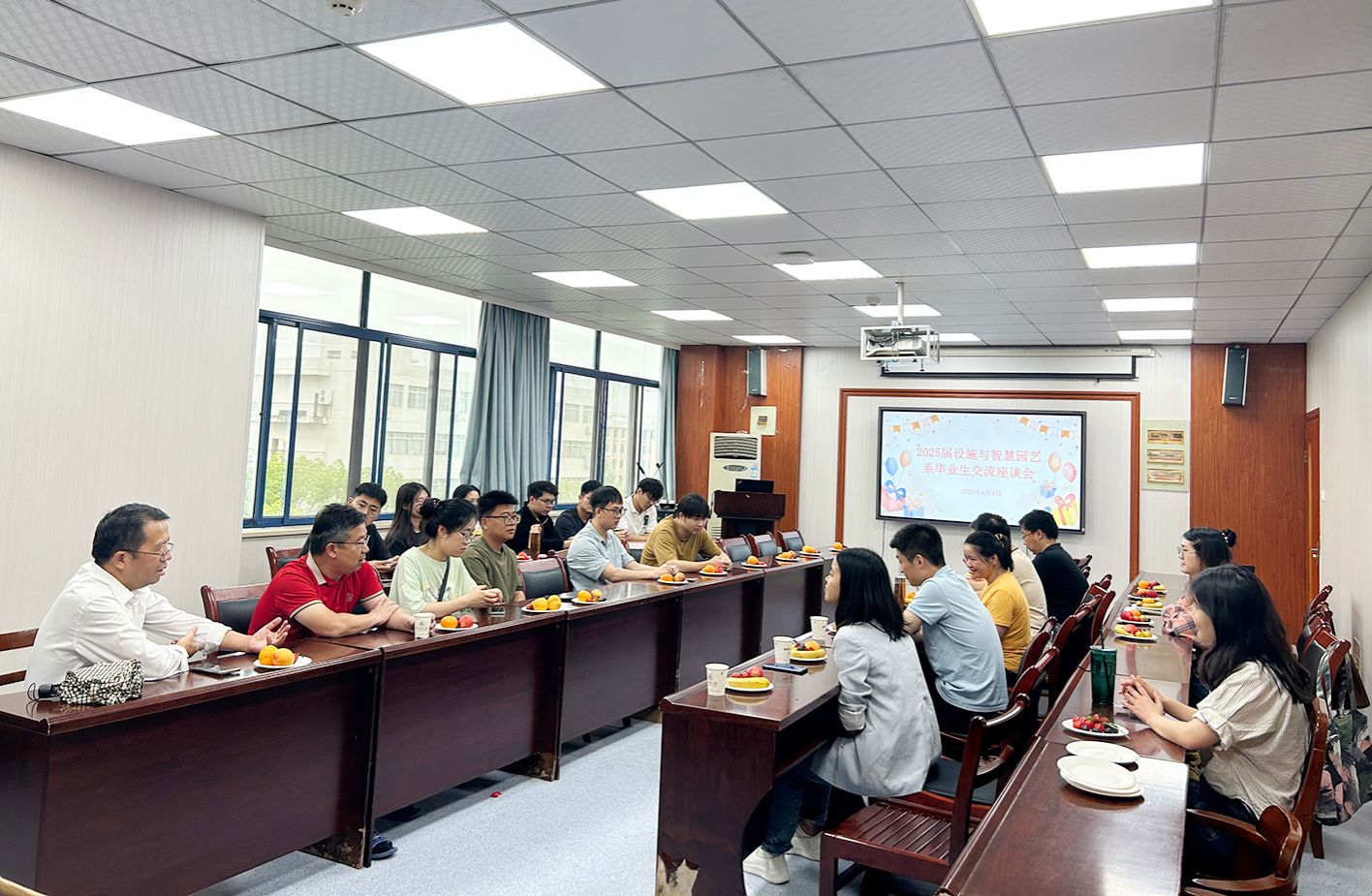 6月9日上午,园林北楼615会议室内洋溢着欢声笑语,八八看球 设施与智慧园艺系2025届毕业研究生座谈会在此举行。八八看球 副院长周继荣、系主任黄远及别之龙、孔秋生、林宗成、蔡兴奎、杨丽、成金桃等老师与毕业研究生代表齐聚一堂,共叙情谊,畅谈未来。座谈会由系主任黄远老师主持。