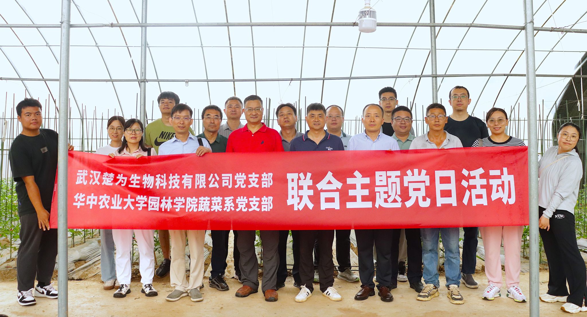6月23日上午,华中农业大学蔬菜系教工党支部与武汉楚为生物科技有限公司开展了联合主题党日活动。