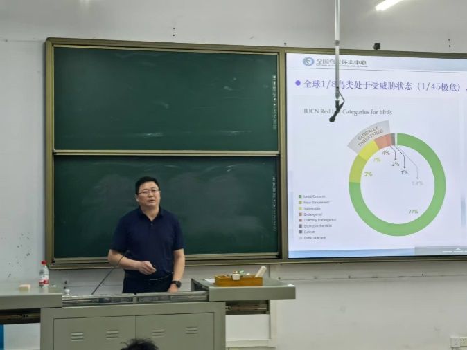 10日的专题报告环节,江红星研究员以《白鹤保护生物学研究》为题展开分享。报告中,他从全球与中国鸟类多样性现状切入,系统梳理鸟类迁飞线路的分布特征与关键节点,深入解读白鹤迁飞规律及保护生物学的最新研究进展,并针对性提出白鹤保护管理的科学策略。此外,江红星还介绍了全国鸟类环志中心的核心工作内容,结合国家重大生态规划展望了该领域未来的关键研究方向。报告结束后,他耐心解答师生提问,并特别强调:“保护生物学研究绝非易事,需要科研工作者兼具坚韧的科研韧性、吃苦耐劳的实践精神、技术创新的应用思维,以及开放协作的交流素养”。
