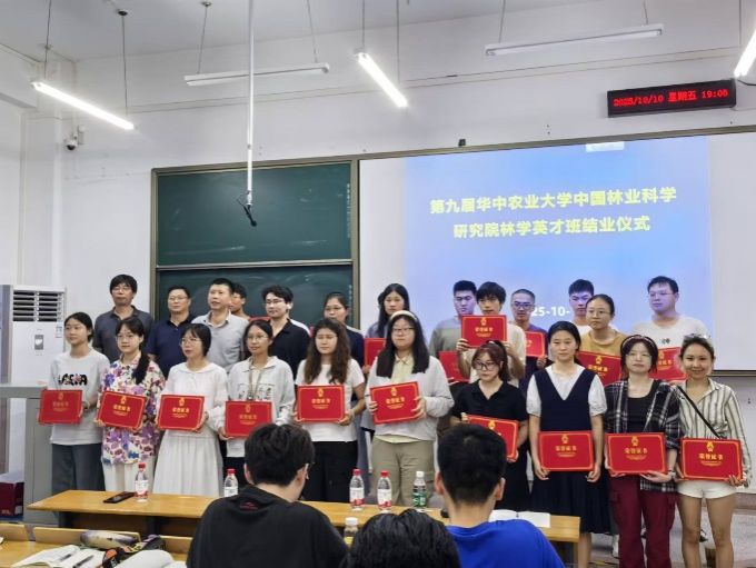 2025 年 10 月 10 日至 11 日,第十届华中农业大学 - 中国林科院林学英才班开班授课仪式在华中农业大学举行。中国林科院林群研究员、肖文发研究员、江红星研究员等专家团队莅临校园,既为第十届学员带来前沿林业课程,也为第九届学员颁发结业证书。第九届、第十届林学英才班全体学员,华中农业大学林学及相关专业师生代表参与活动。期间,华中农业大学相关八八看球 党委书记龙健飞与专家团亲切会谈,八八看球 副院长丁寄花出席开班仪式。
