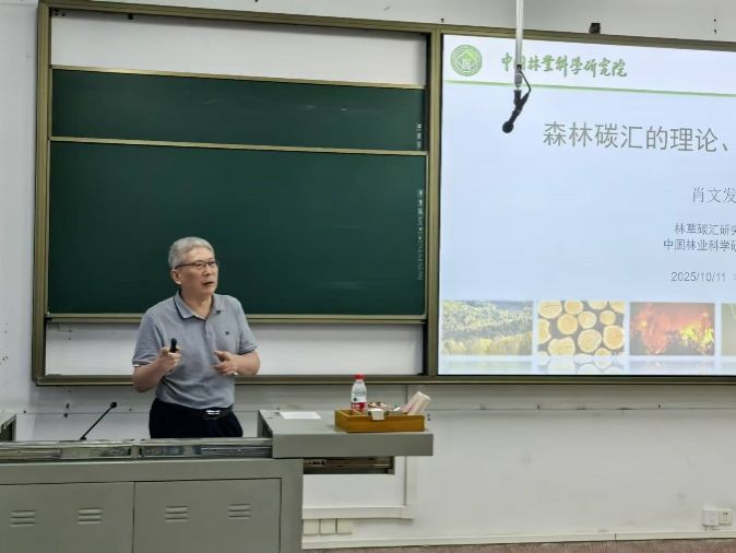 11 日上午,肖文发研究员带来《森林碳汇的理论、技术与政策》专题报告。作为应对全球气候变化的重要议题,他从 “人与碳的关系” 这一基础问题出发,清晰界定碳汇与森林碳汇的核心概念,系统阐释森林碳汇的理论体系与关键技术,同时解读我国森林碳汇领域的相关政策导向。报告中,肖文发结合自身团队的研究案例,展示了森林碳汇研究的最新成果,将科学原理、政策要求、社会经济价值与实践经验深度融合,生动呈现出该领域研究的系统性与复杂性。作为华中农业大学林学校友,肖文发还以 “学长” 身份勉励学员:“要充分利用学校的优质资源与良好学术环境,扎实筑牢林学基础理论,主动拓宽科学视野,打破学科思维壁垒,在未来为推进人与自然和谐共生的中国式现代化贡献林业力量”。