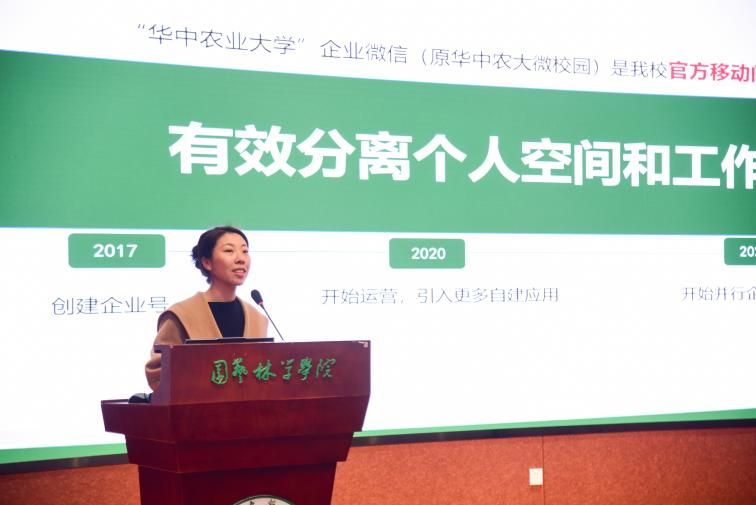 会上,网信办王卫老师应邀就企业微信助力教师高效办公进行专题分享。她详细介绍了企业微信在文件传输、日程管理、线上协作等方面的实用功能,结合教学科研场景演示了如何通过数字化工具提升工作效率,为教师们带来了便捷办公的新思路。
