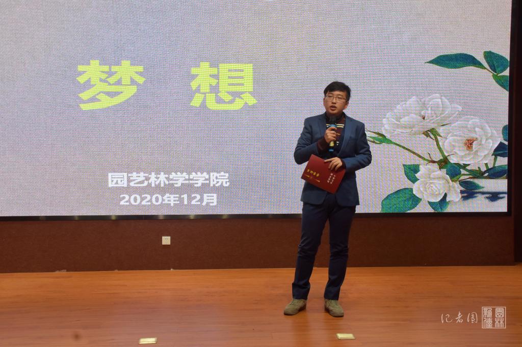 园林1701班丁文潇同学以“坚持”为关键词讲述了他对87观赏园艺奖学金的理解,“他们向一代又一代的华农学子们传递着一种信念,只有坚持学习,坚持梦想,才能守住初心,迎接未来。”万绿园林励志奖学金获得者温宇鑫谈到“传承”一词时表示,中国的园林事业之所以方兴未艾,生机勃勃,靠的正是一代代园林人不断地从传统文化中汲取营养和智慧,不断地传承与发扬园林技术。“我们都是造梦人,我们也同时是追梦人。”叶志彪奖学金获得者袁丰澍认为,华中农业大学的学子应该做有梦想的有志青年,将“勤读力耕,立己达人”的校训落到实处,用小的梦想共同描绘出一幅“国家富强、民族振兴、人民幸福”的中国梦。