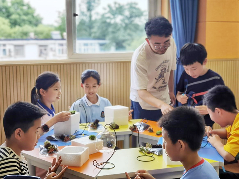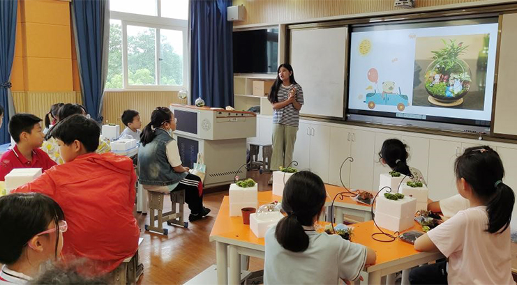 5月28日下午,八八看球 2020级园林植物与观赏园艺研究生党员等一行赴华农附属小学为五年级2班的50位小朋友讲授微景观制作活动。