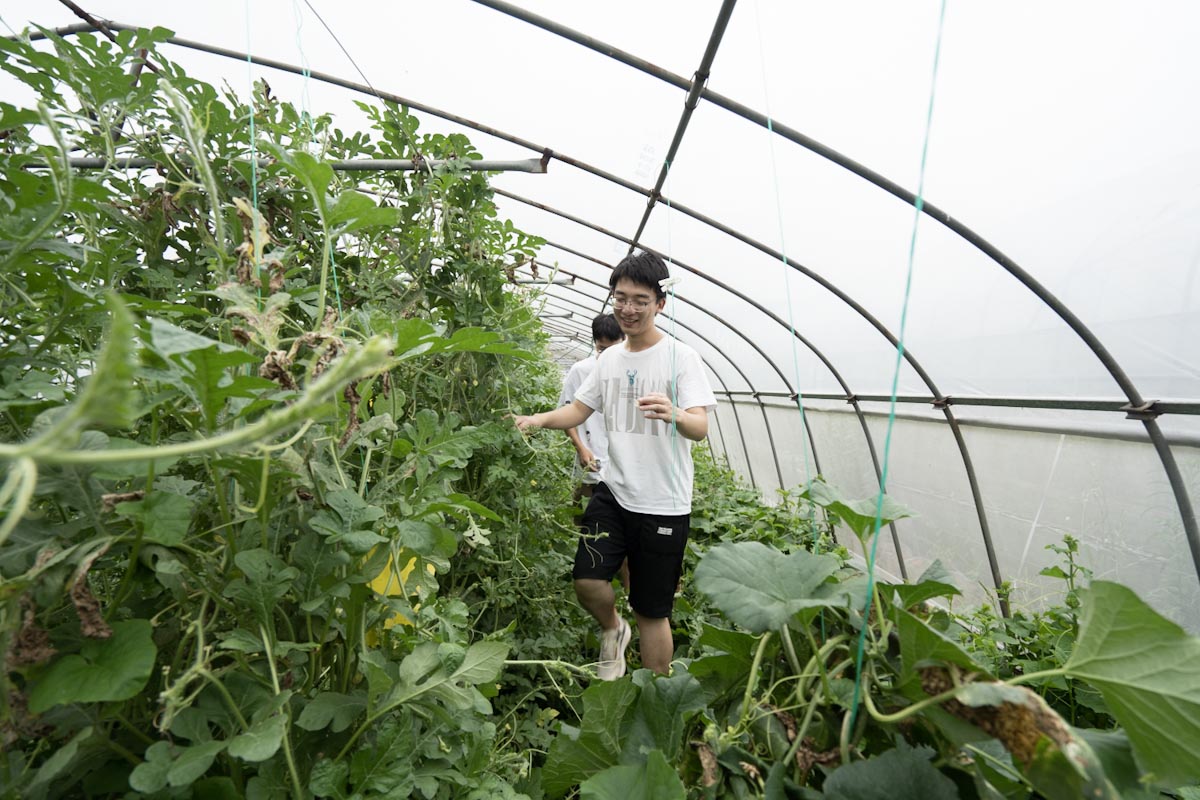 2021年6月17日,同学们在蔬菜基地大棚前的空地上支起一顶顶帐篷,一堂别开生面的专业实习课在大棚内的采摘活动中拉开序幕。设施专业的同学们早早地将地里现采的甜玉米放入锅中烹调。广场四周,陈列着种类丰富、味道甜美的各种西甜瓜,还有各式各样的生菜、辣椒、番茄等蔬菜。这些产品大都来自于同学们在专业实习过程中的辛勤劳作,师生们一边品尝着果实,一边共同回顾专业实习过程中的件件趣事。