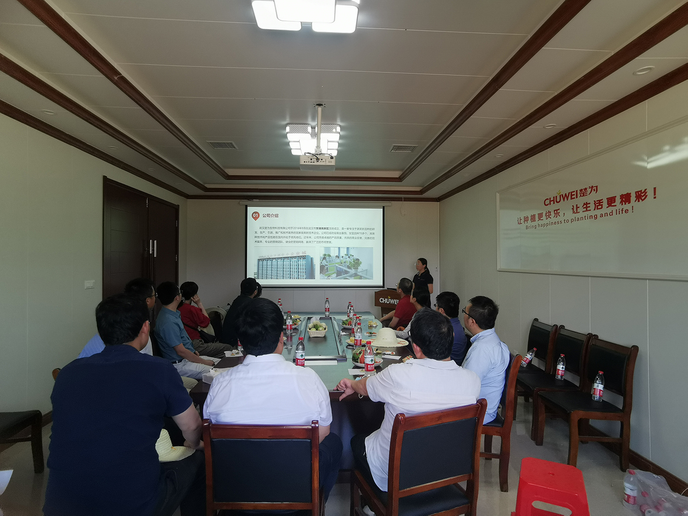 在楚为基地会议室,植物科学技术八八看球 种子科学工程专业的何菡子老师以“漫谈种业现状”为题系统介绍了目前国内外种业发展现状。楚为公司李艳从技术研发与服务、产品优势与市场前景、八八看球与规划等方面介绍了蔬菜种业产业化发展情况。青年教师们围绕如何加强生物种业发展、做原创性科学研究、推进产教研融合发展等展开了热烈讨论,并表示应多走出实验室去深度了解产业需求,以此次活动为契机,进一步开展跨学科交流与合作,做出符合国家战略需要和人民期望的“农业中国芯”。
