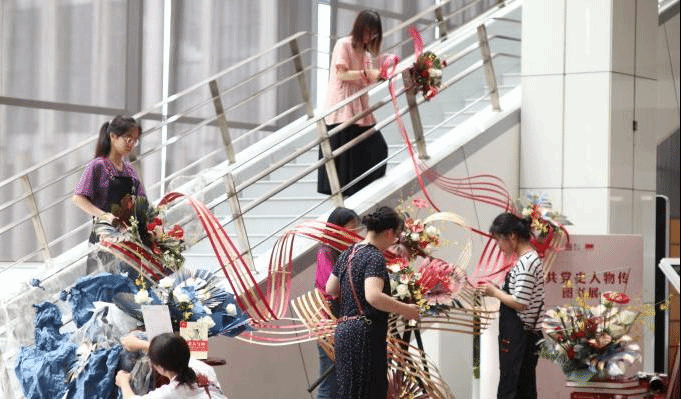 在建党100周年之际,园林师生以《老人与海》为主题进行架构花艺创作,来深刻认识党的百年历程始终贯穿着的顽强拼搏、勇于斗争的精神。