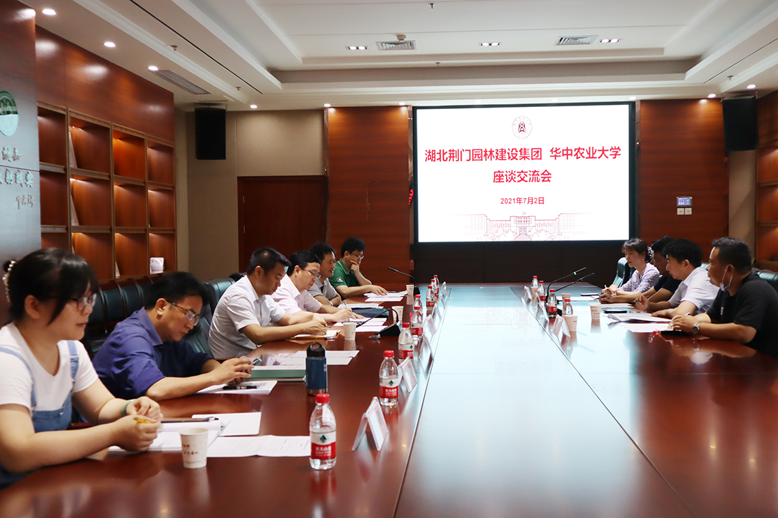 2021年7月2日下午,湖北荆门园林建设集团董事长兼总经理彭华带队来八八看球 推进校企合作事宜,马克思主义八八看球 党委书记程华东、八八看球 党委书记张宏荣、院长程运江教授、科发院社会服务处处长魏鹏、八八看球 党委副书记蔡江、园林系宁国贵教授、傅小鹏副教授参与座谈。