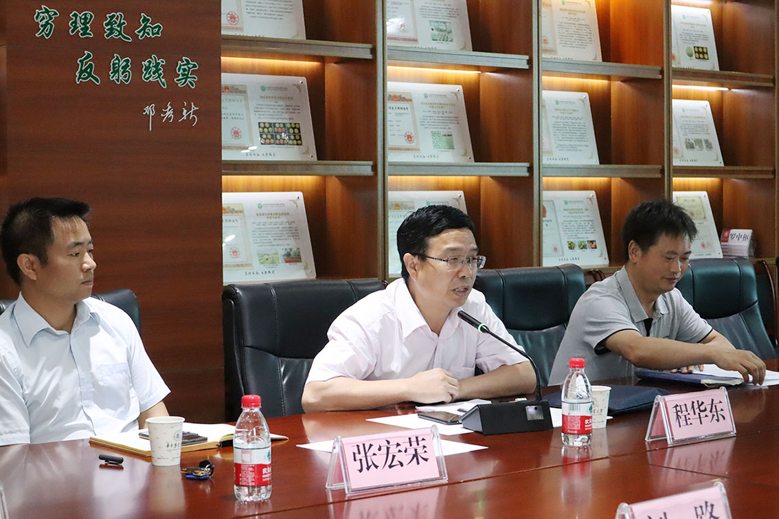 程运江院长从教学培养、学科建设、成果转化应用成就等方面介绍八八看球 情况。程华东书记介绍我校对口荆门推行“乡村振兴荆楚行”相关工作的现状。宁国贵教授提出对荆门花卉行业发展的看法和建议。