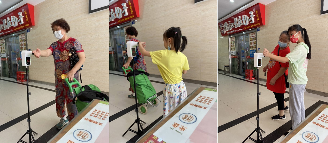美食城居民积极主动测量体温(刘旭阳 摄)