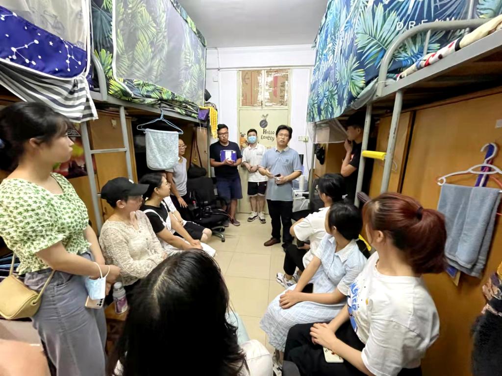蔡江副书记深入寝室与学生交流(邬远生摄)