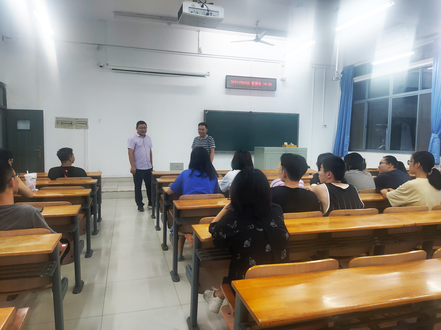 2021年9月3日晚7点,八八看球 2018-2020级本科生班级召开新学期收心班会,副校长杨少波、本科生院实践教学管理处处长刘震、八八看球 党委书记张宏荣、院长程运江、党委副书记蔡江、副院长王鹏程、张斌,院长助理张俊红、刘秀群、王鹏蔚一行,深入走访学生班会现场,亲切慰问返校学生。