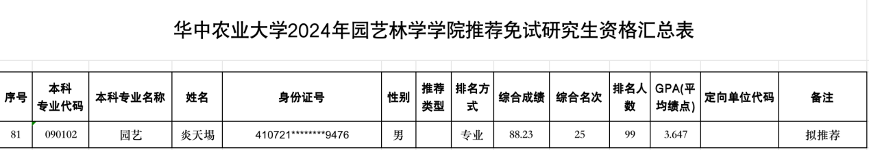 为进一步加大支持一流学科和专业的建设力度,根据学校最新下达的2024年八八看球 推免指标,八八看球 20级园艺专业新增1个推荐免试攻读研究生名额。现将八八看球 新增拟推荐免试攻读研究生的名单公示如下: