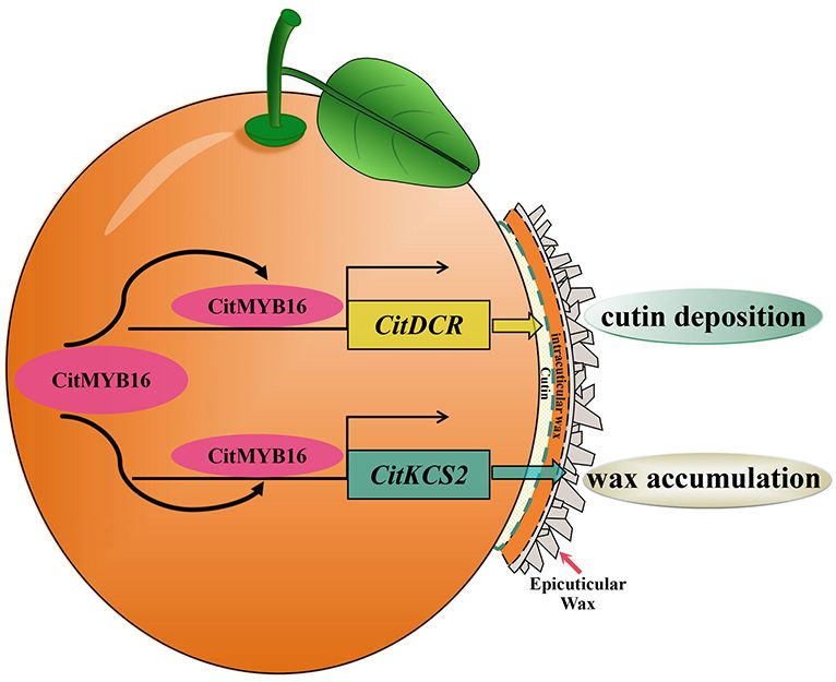 图5 CitMYB16调控柑橘角质和蜡质合成的分子机制