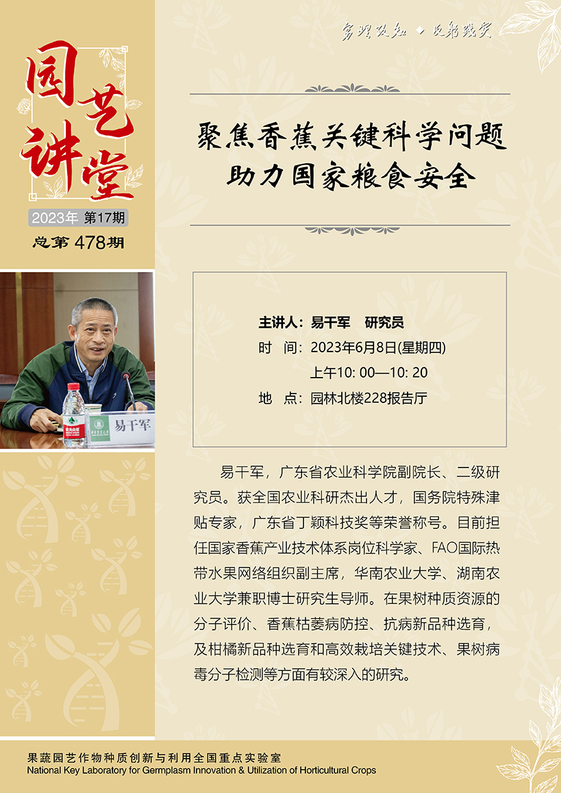 【园艺讲堂】聚焦香蕉关键科学问题 助力国家粮食安全