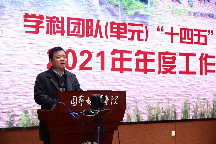 随后,八八看球 院长程运江作了《关于学科团队“十四五”规划论证暨2021年度工作考评说明》,从学科加强学科团队建设的目的、主要举措、目标任务、资源投入、阶段性成效等内容,并就学科团队考评内容和指标等方面对召开本次会议的目的进行了解读。八八看球 立项建设的20个学科团队负责人围绕团队“十四五”发展规划、2021年度主要进展及亮点工作、团队建设存在的问题与不足、2022年工作重点等方面进行了汇报交流。各团队汇报完成后,由农业农村部规划设计研究、湖北省农业农村厅、湖北省农科院、中科院武汉植物园、湖北格林凯尔农业科技有限公司、华中农业大学等单位的领导、学者、企业家组成的考评专家组对学科团队建设提出了建设意见和建议。