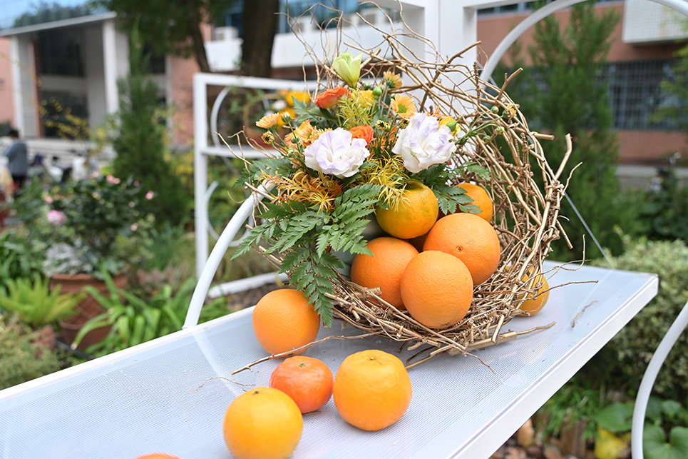 “后皇嘉树”作为整个活动的主题,取自屈原的《橘颂》,整个园艺节活动由秦仁强老师团队策划,利用园艺元素“果菜花茶”贯穿其中,不同材料、不同架构造型,形成具有空间感、艺术气息的山水园艺作品。在园林广场上由“花田园艺”开始打开丰收的画卷。橙红橘绿迎丰收,空间芳香提精神,山水茶艺秀,明镜飞花环,文化与人文、学术风采贯穿其中,20余种特色活动,体验式互动,可手工可绘画,可尽情装扮!