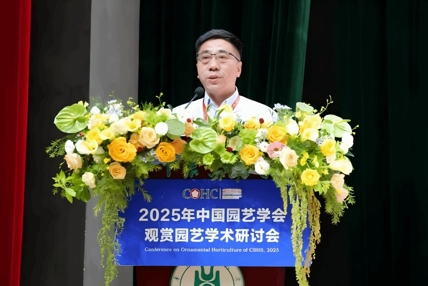 中国园艺学会副理事长、观赏园艺专业委员会主任潘会堂教授致辞(通讯员 殷铭轩 摄)