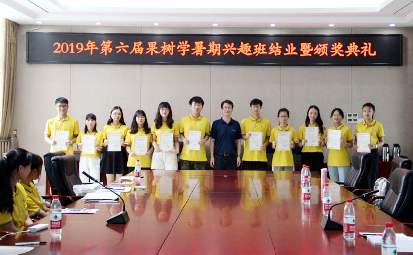 9日下午,兴趣班于园林南楼206会议室举行了结业典礼,院长程运江教授、党委蔡江副书记、系主任刘继红教授及部分果树系教师与会,会议由班主任刘军伟老师主持。