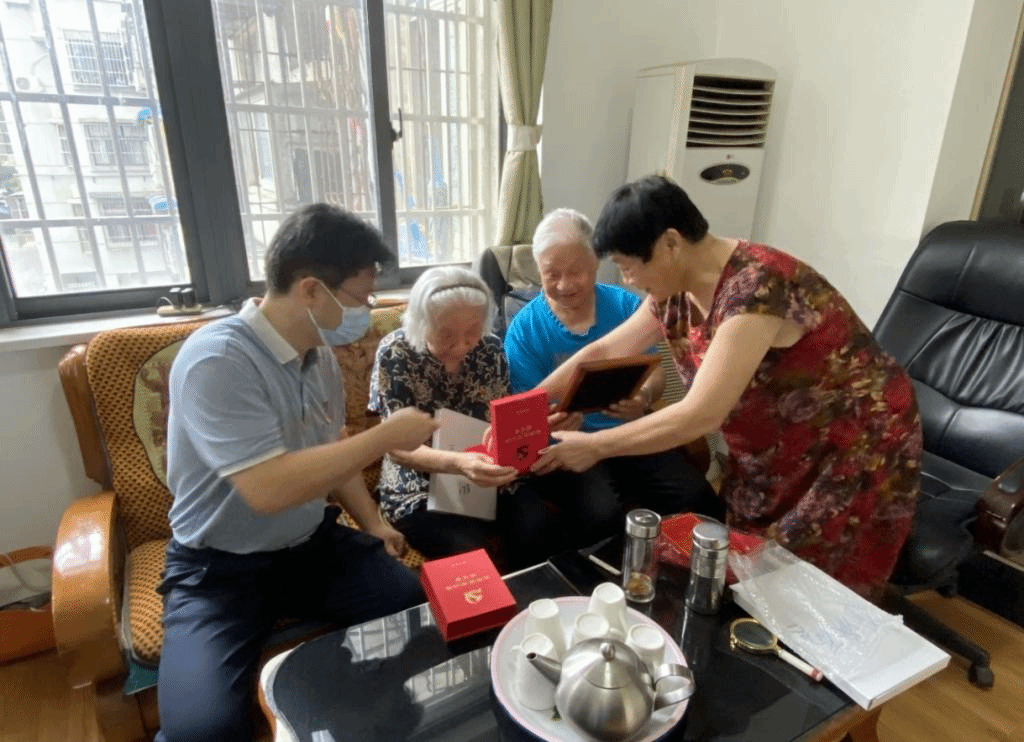在党的百年华诞即将到来之际,6月30日,八八看球 党委书记张宏荣,党委副书记蔡江、离退休支部书记王健等一行走访慰问八八看球 党龄超过50年的离退休老党员,并为他们颁发“光荣在党50年”纪念章以及纪念照片。