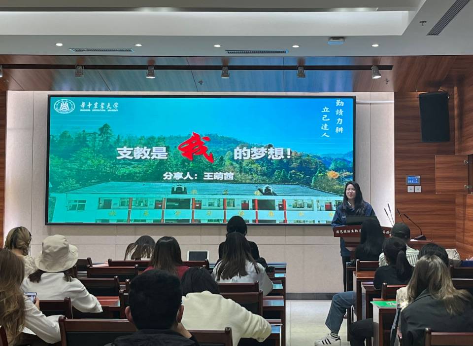 本次分享会在暖场视频《小杜鹃》中展开,“只有头脑清醒,才算真正富有……”稚嫩的歌声带我们走进了为民小学,这是由杨子萱支教所带学生录制,从稚嫩淳朴的孩子身上感受到他们的乐观向上和对知识的渴望。接下来,杨子萱以“我们”的故事引入介绍了华中农业大学研究生支教团,从星火-接力-传承-绽放四部分,分享她在贵州省毕节市大方县猫场镇狗吊岩组兴合村为民小学的“一场青春之约,一生难忘回忆”支教经历,共同学习了习近平总书记给本禹志愿服务队的回信,牢记总书记“与祖国同行,为人民奉献”的嘱托,通过讲述照片背后的故事让我们了解到她在支教过程中难忘的经历与体会,将狮子山下薪火相传给予她的感动传达给在场的每一个人。