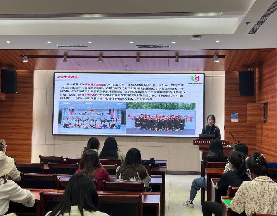 3月13日晚,八八看球 研究生志愿服务中心在南楼204开展‘牵挂·传承’支教志愿故事分享会,邀请到第十六届研究生支教团成员杨子萱同学和王萌茜同学,分享她们走进大山深处,激情燃烧的青春故事。