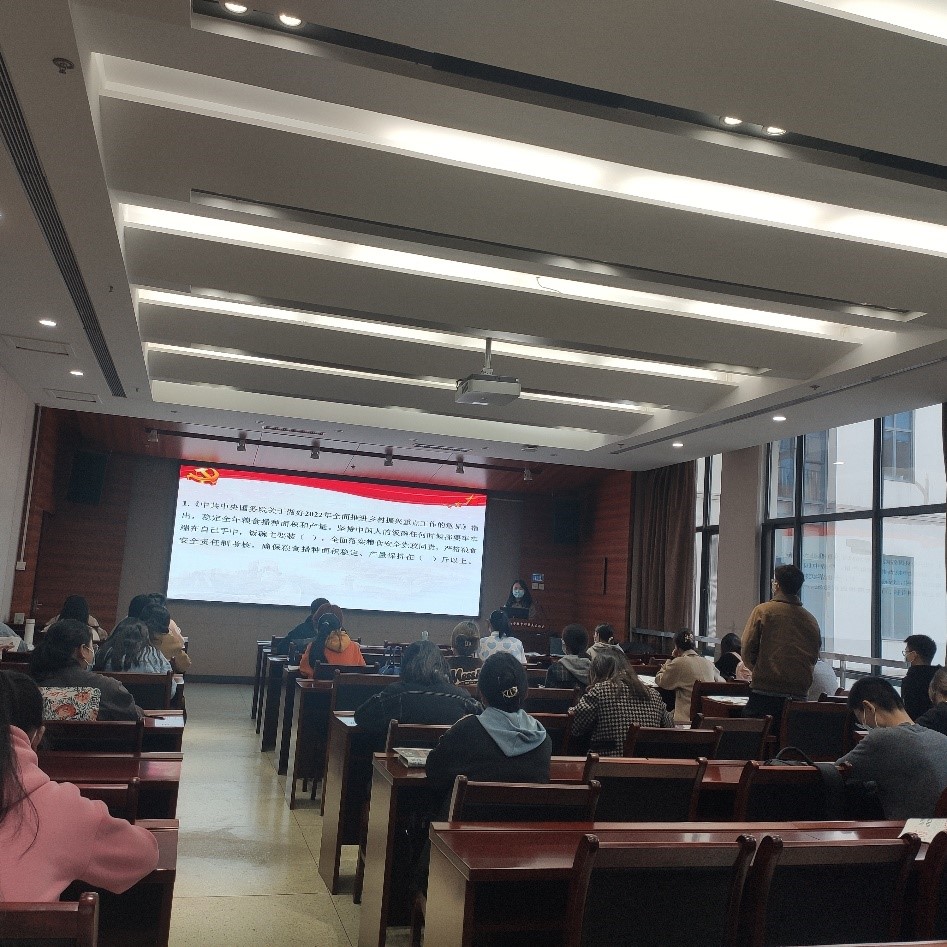共同观影,深度思考。本次活动同学们一起观看了《焦点访谈》节选“聚焦两会——跟记上两会”以及“聚焦两会——希望的田野”。九年间,总书记听取了370多位代表的发言,影片带领大家了解了今年两会期间重点关注的保障粮食安全工作、社保问题、民生问题 、民族团结工作、加快实现科技自立自强等话题。2022年中央一号文件刚刚发布,脱贫攻坚任务完成后,“三农”工作的重心已经转向全面推进乡村振兴。乡村振兴一头连着脱贫攻坚,一头连着共同富裕,都是事关民生的大事。作为农业大学的学生,我们更要运用专业知识,发展农业科技,苦干实干,以强农兴农为己任,勤读力耕,立己达人,展现新时代农学生的新担当、新作为。